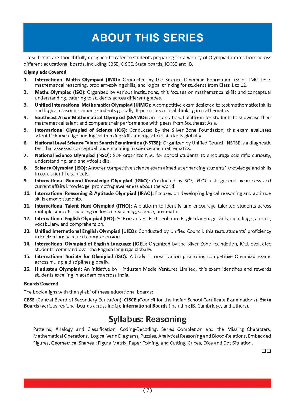 One for All Olympiads Chapter-wise Previous Years' Solved Papers, Prep-Guide (with Level 1, 2 & Achievers Section) Class 7 Reasoning For 2026 Exam
