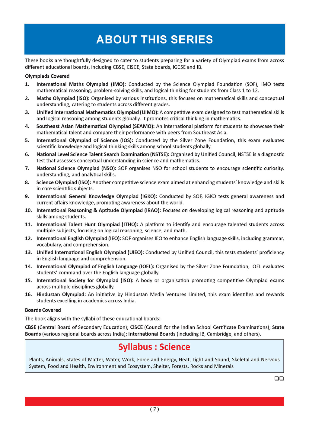 100% Exam Readiness with Previous Years’ Questions, include Questions for all leading Olympiads like SOF(IMO,NSO, IEO & more), Silverzone, Hindustan & Other Olympiads. Cover School, National & International Olympiads.