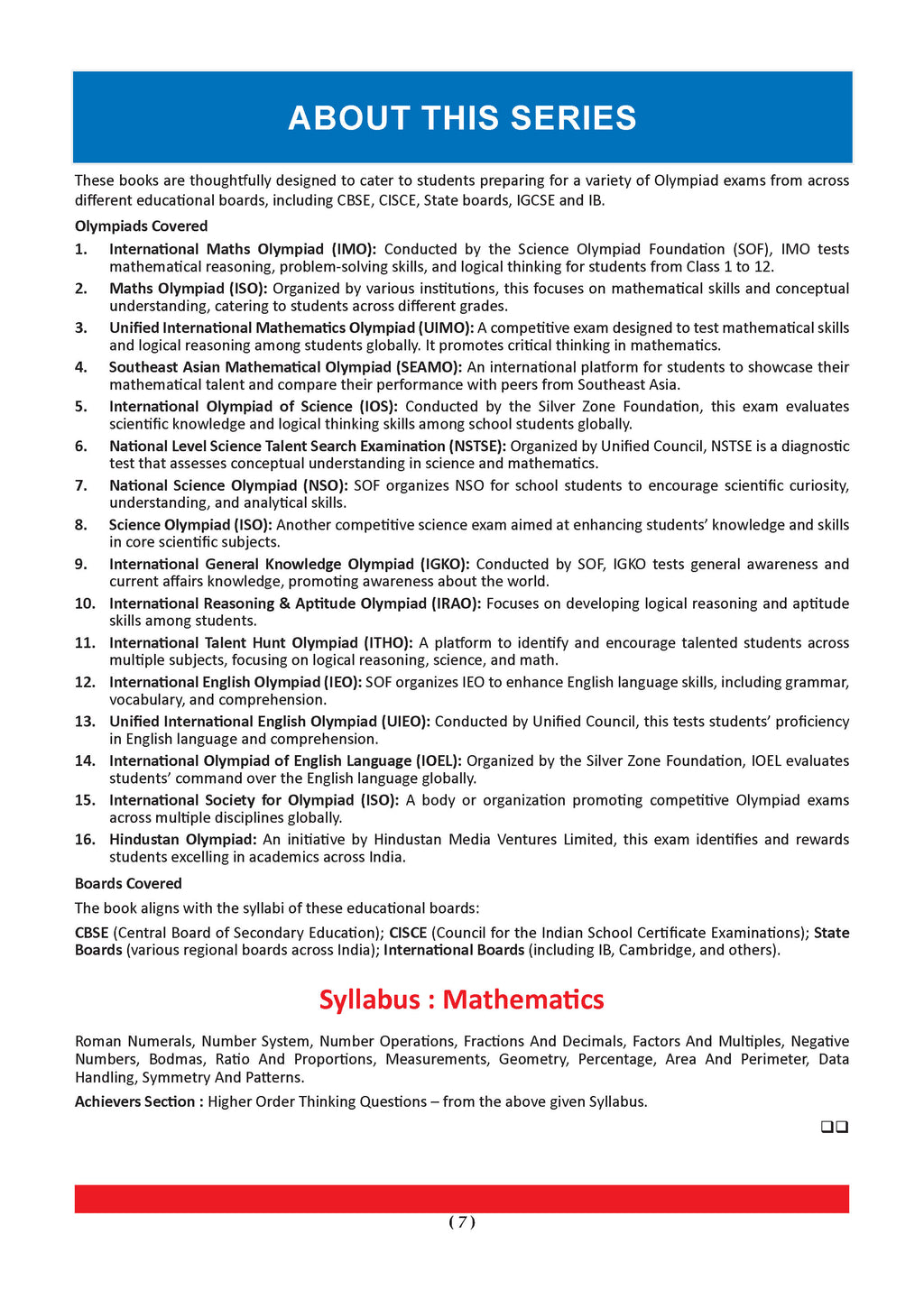 100% Exam Readiness with Previous Years’ Questions, include Questions for all leading Olympiads like SOF(IMO,NSO, IEO & more), Silverzone, Hindustan & Other Olympiads. Cover School, National & International Olympiads.