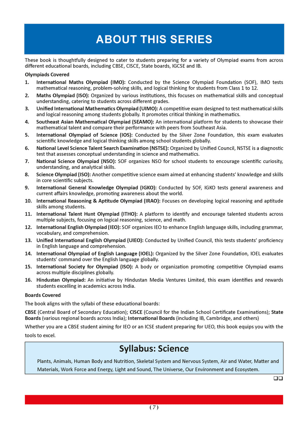 100% Exam Readiness with Previous Years’ Questions, include Questions for all leading Olympiads like SOF(IMO,NSO, IEO & more), Silverzone, Hindustan & Other Olympiads. Cover School, National & International Olympiads.