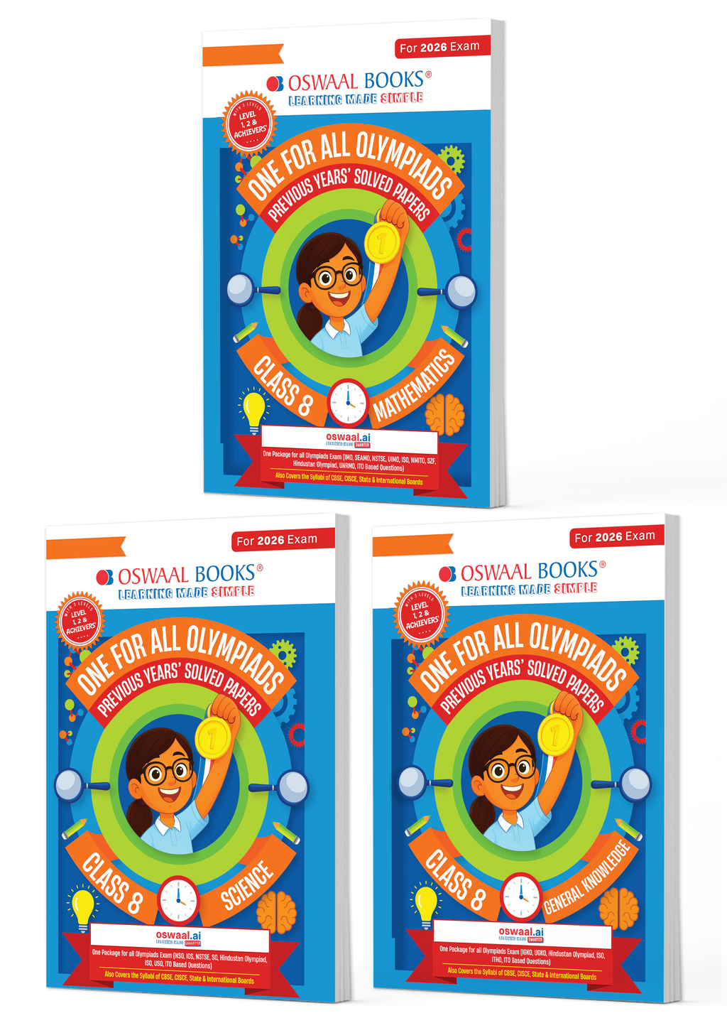 One for All Olympiads | Class 8 Maths, Science, GK | Chapter-wise Previous Years' Solved Papers | Prep-Guide With Level 1, 2 & Achievers Section (Set of 3 Books) For 2026 Exam