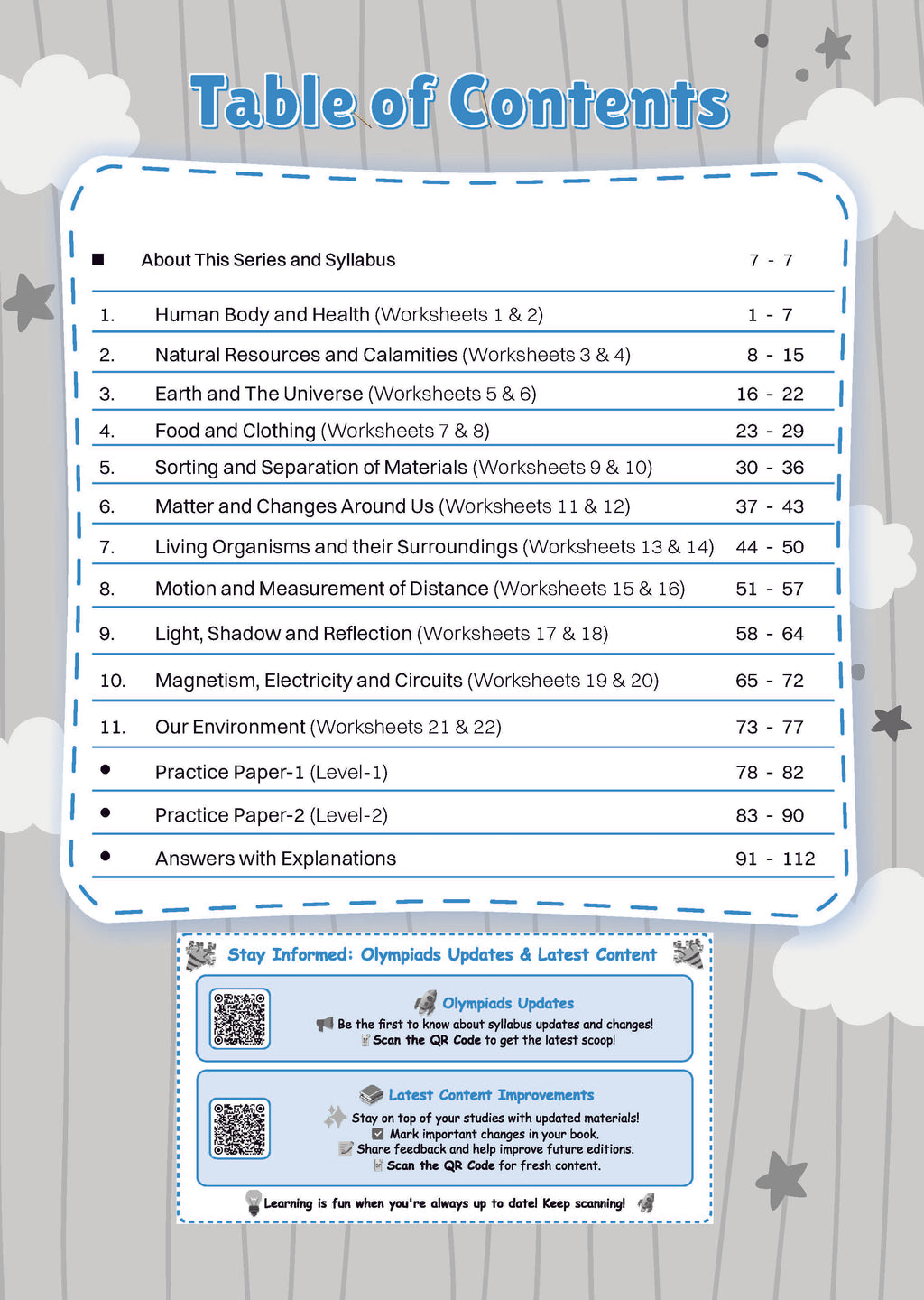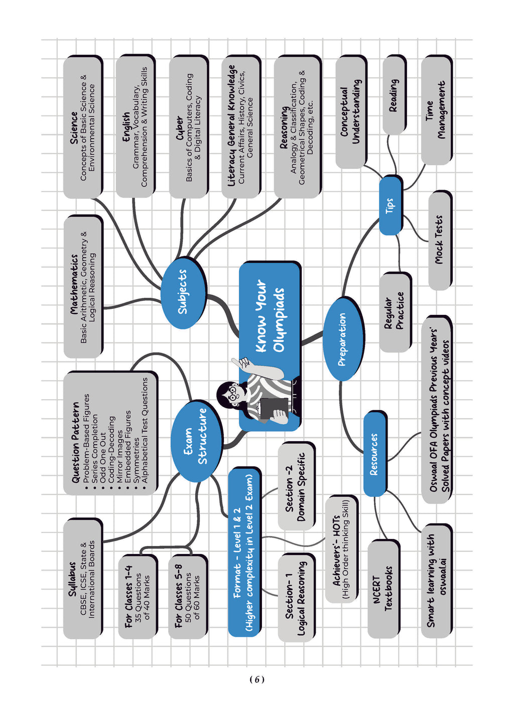What’s Inside?• Targeted Olympiad Practice: Chapter-wise, topic-wise questions aligned with CBSE, CISCE, State & International Boards ensure relevant, all-round Olympiad exposure.• Chapter-wise Mind Maps: Enable quick revision by organising key ideas in an easy-to-remember visual format.• Graded Difficulty Levels: Level 1 builds strong basics, Level 2 improves logic, speed & accuracy, while Achievers’ Level challenges high-order thinking.• Chapter-wise Worksheets: Enable systematic practice, helping students master one chapter at a time.• Level 1 & 2 Practice Papers: To familiarise students with real Olympiad exam patterns and boost confidence.