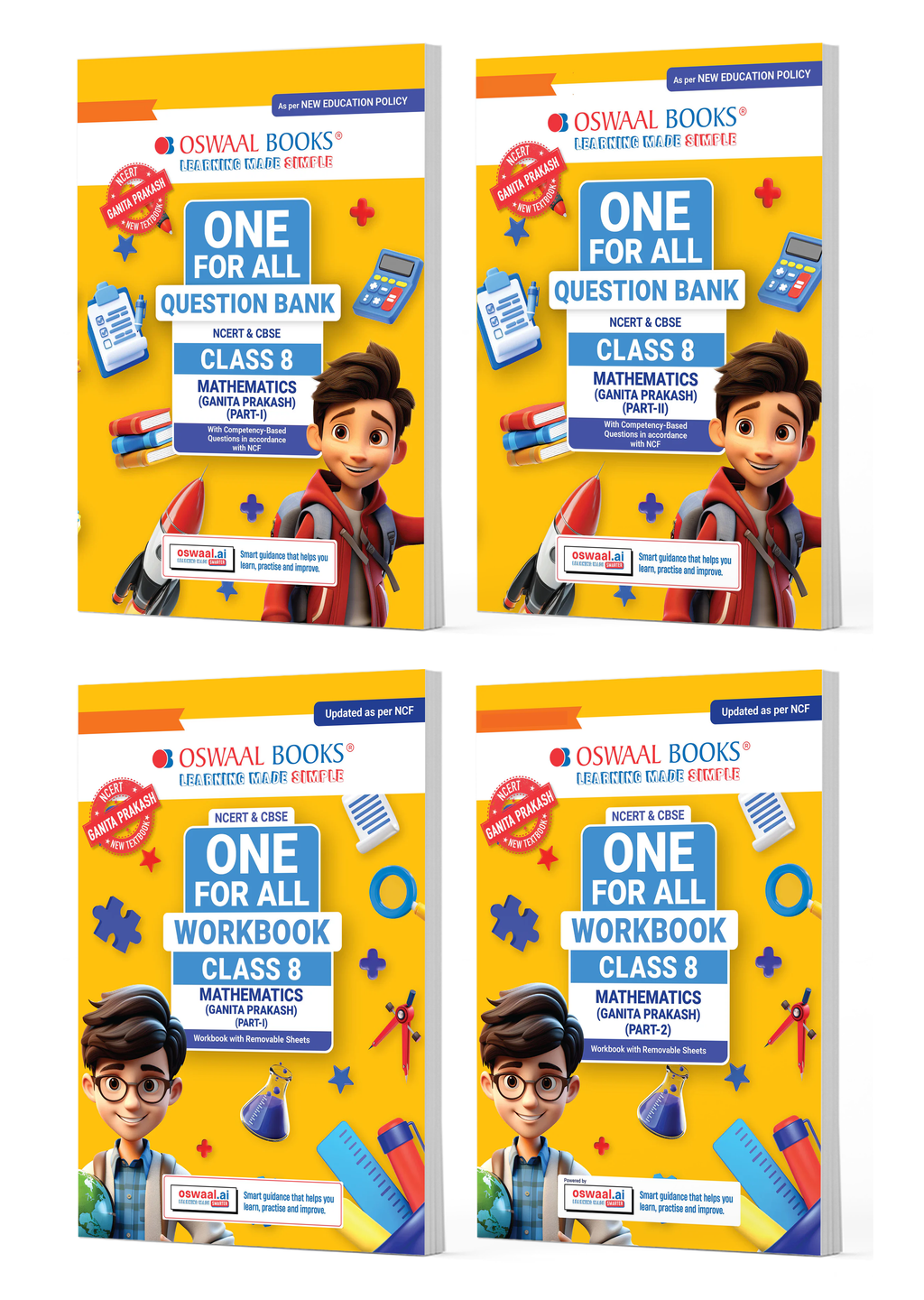 One For All Question Bank + One For All Workbook (NCERT & CBSE) Mathematics Part-1 & Part-2 Class 8 (Set of 4 Books) | Updated As Per NCF For Latest Exam
