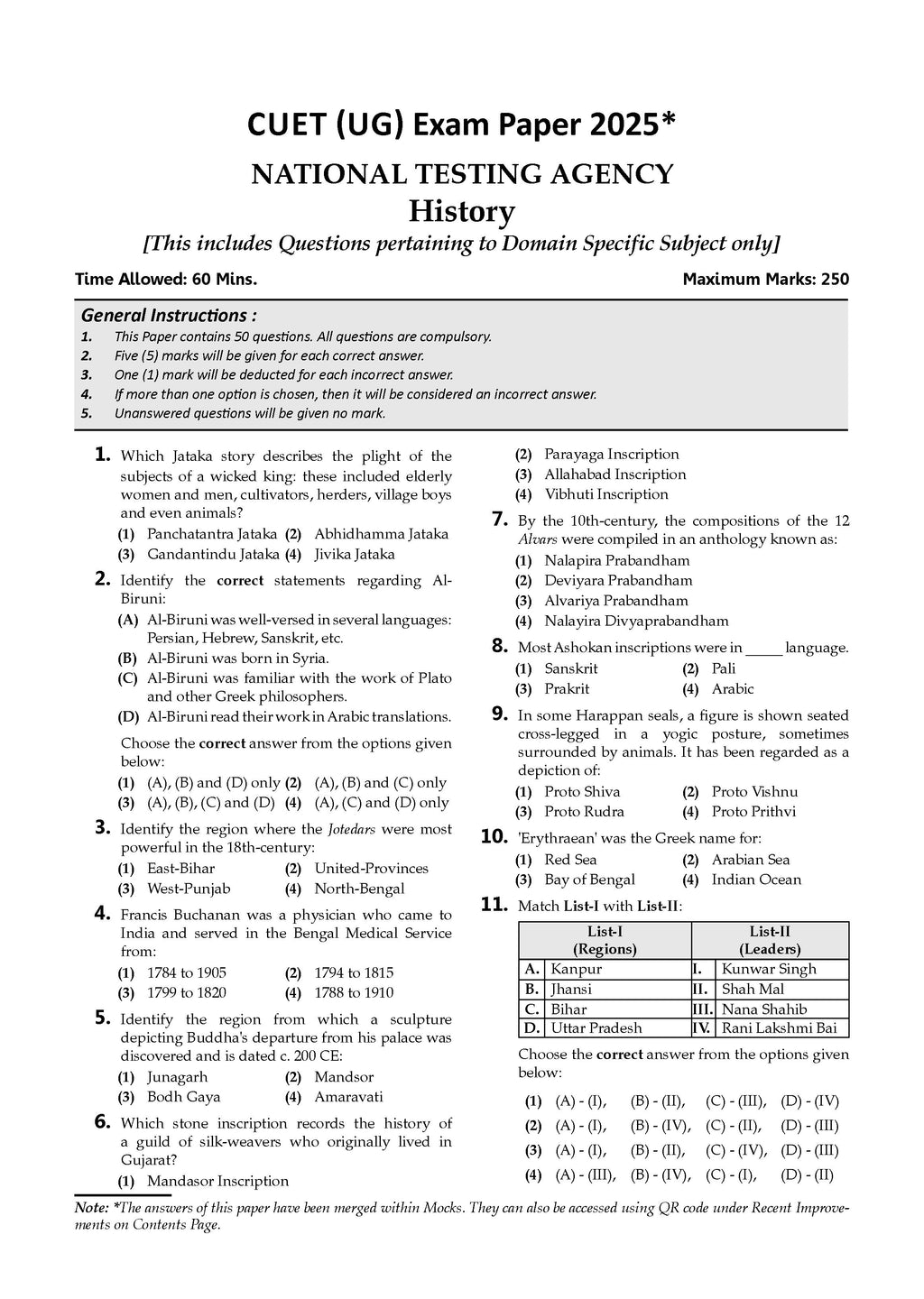 NTA CUET (UG) 10 Mock Test Papers History For 2026 Exam (Section –II) (as per latest 27 Dec., notification) | 500+ MCQs for Practice | Includes 2025 Paper- fully solved | With Oswaal AI