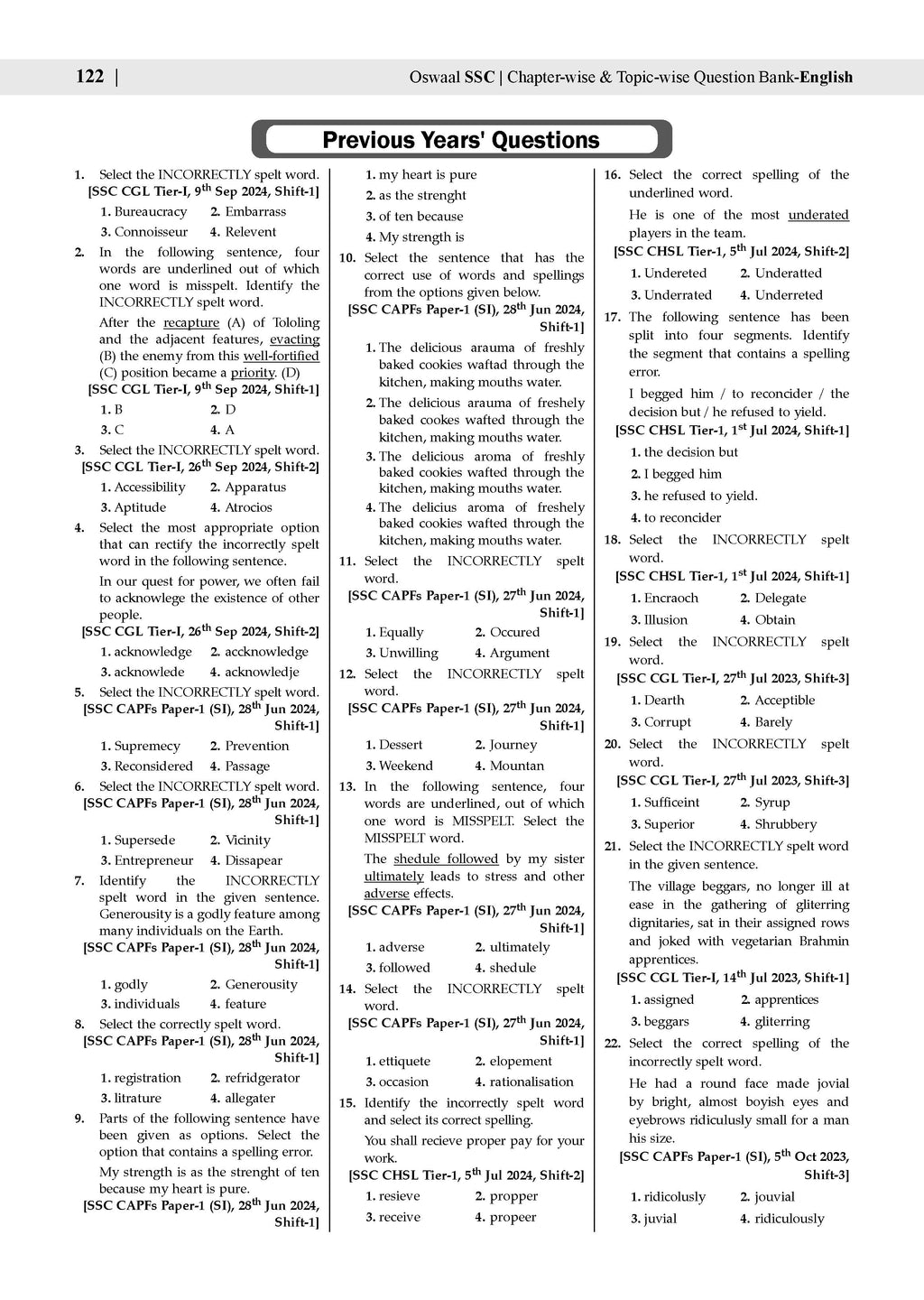SSC (Staff Selection Commission)| Tier-1 | Chapter-wise & Topic-wise Question Bank 2011 to 2025| English Comprehension | For 2026 Exam