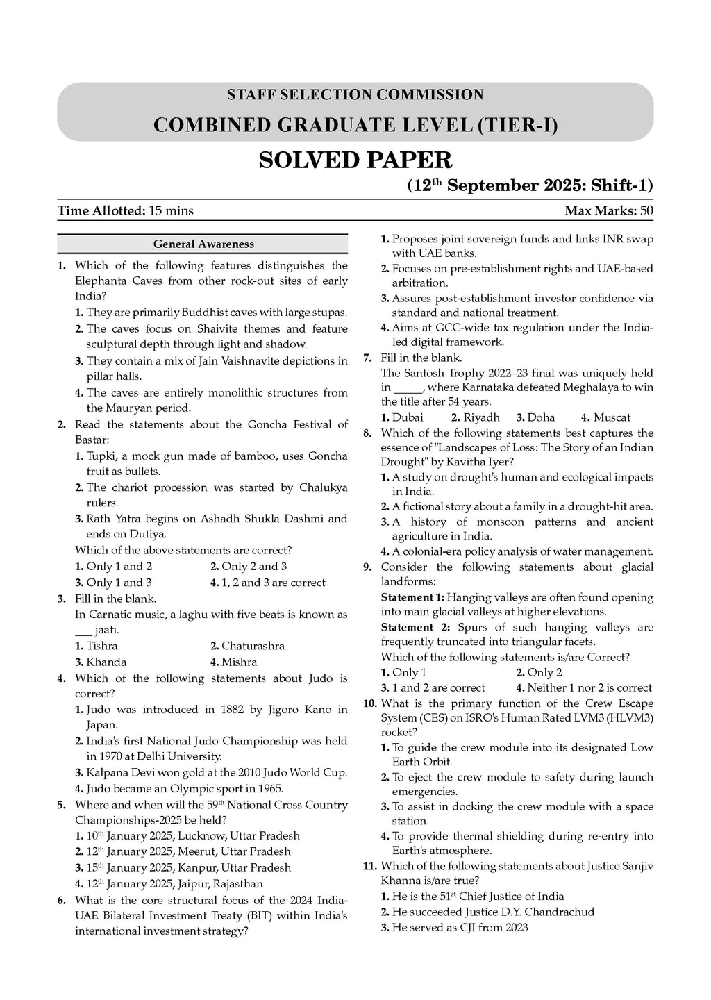 SSC (Staff Selection Commission)| Tier-1 | Chapter-wise & Topic-wise Question Bank 2011 to 2025| General Studies | For 2026 Exam