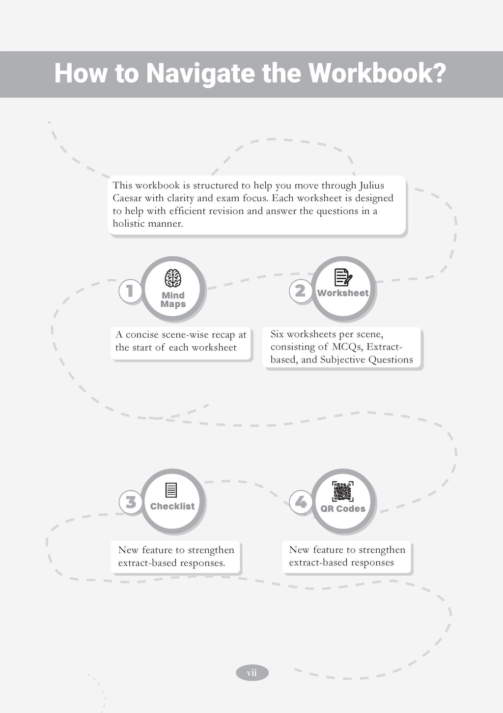 Benefits and differentiator:• New feature of student checklist for better answer recall• New mind maps from Act I-V• MCQs, extract-based, and subjective questions with answer key• Latest syllabus compliance and key exam patterns• Product launch in partnership with established distributors