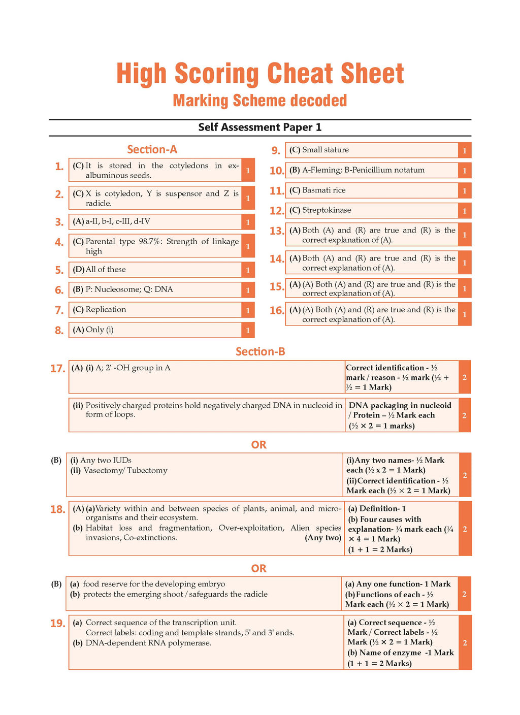 •High Scoring Cheat Sheet” with Decoded Marking Scheme